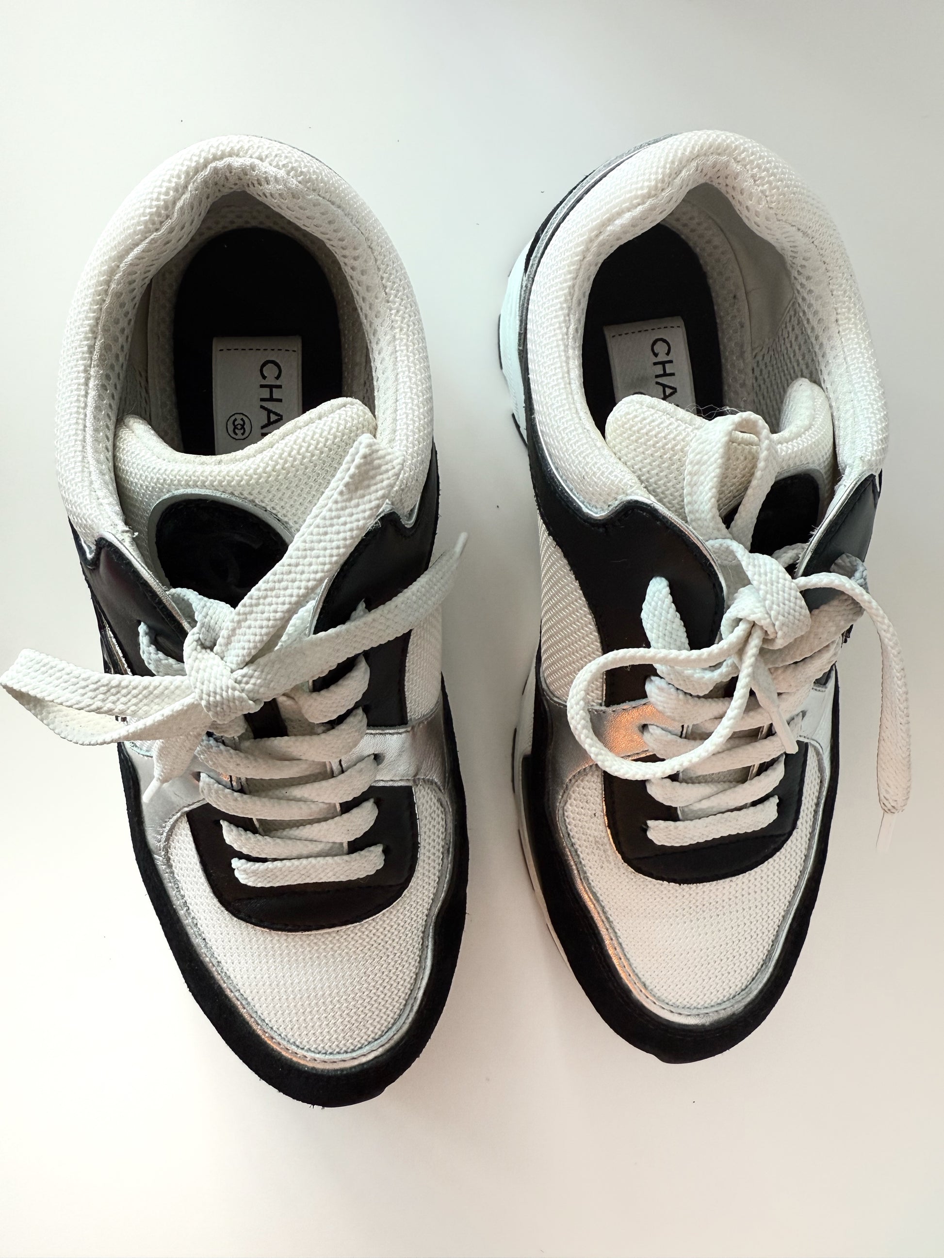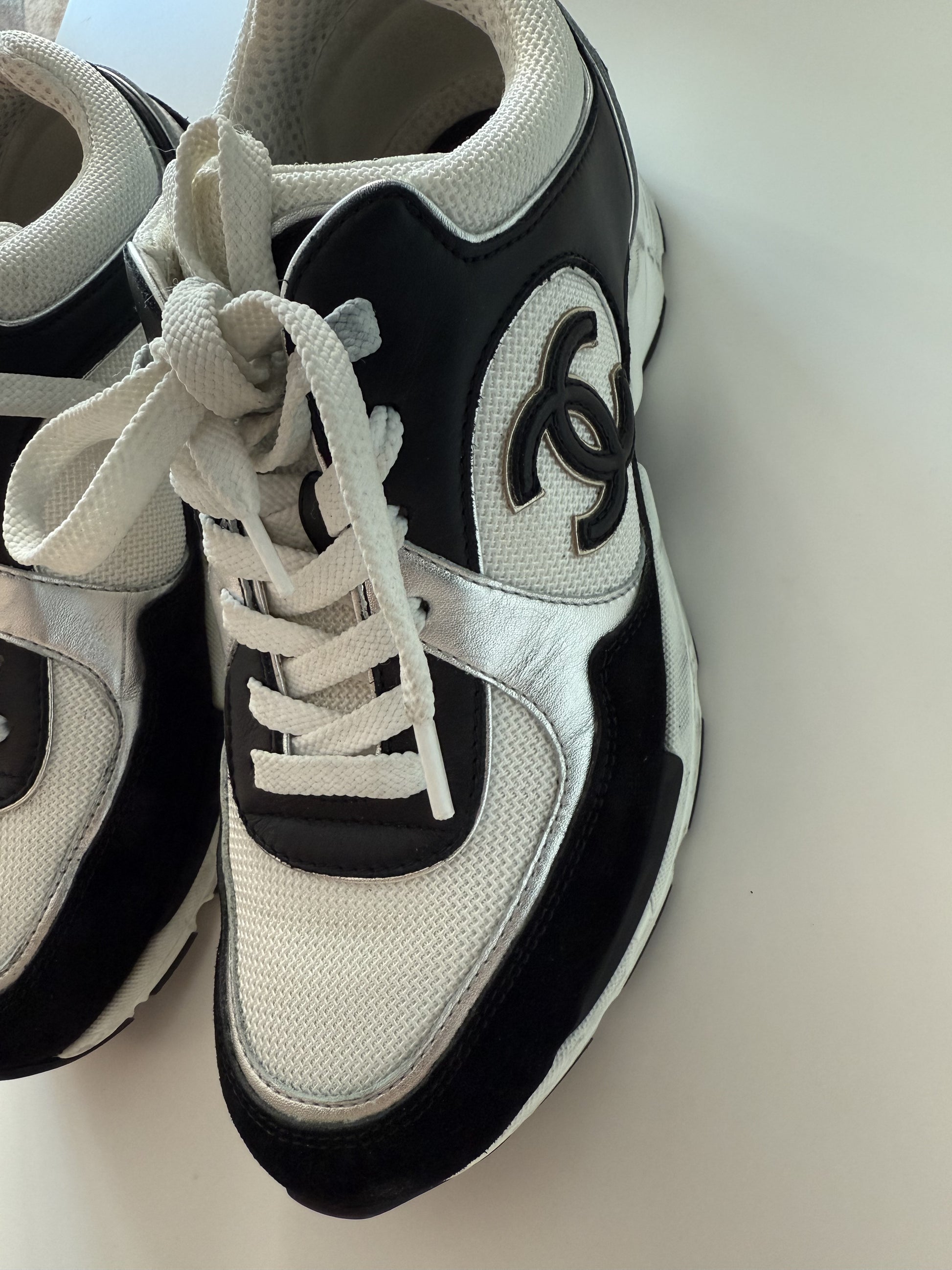 Size 38.5 EU. Black and white Chanel Logo Sneakers. Comes in original box. Originally
