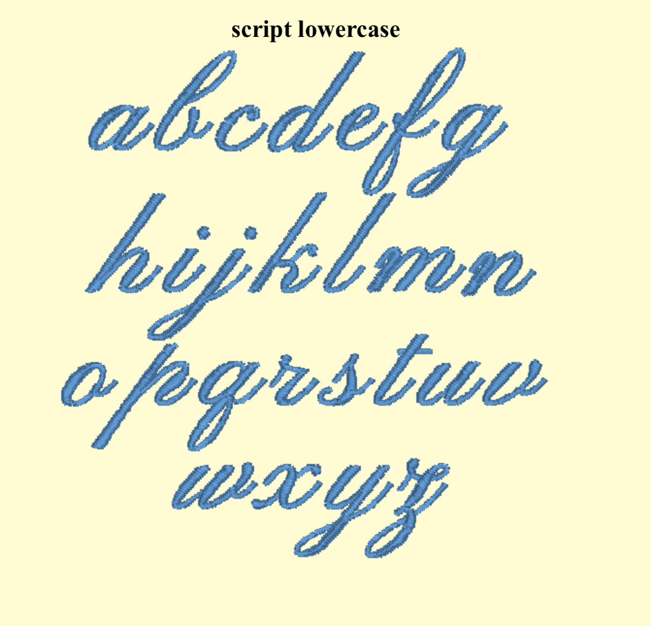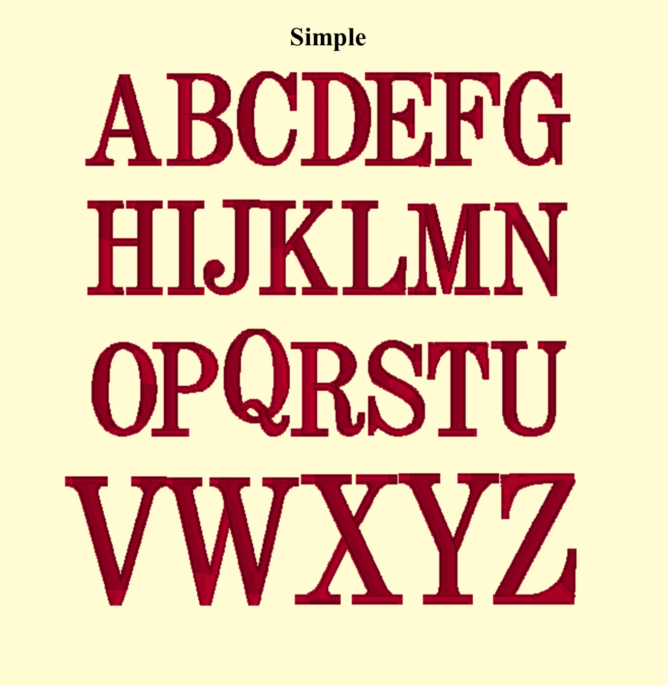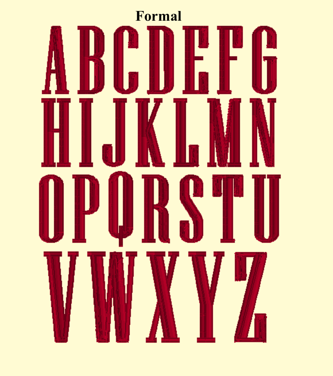 Font: script, interlinked script, formal, or simple font