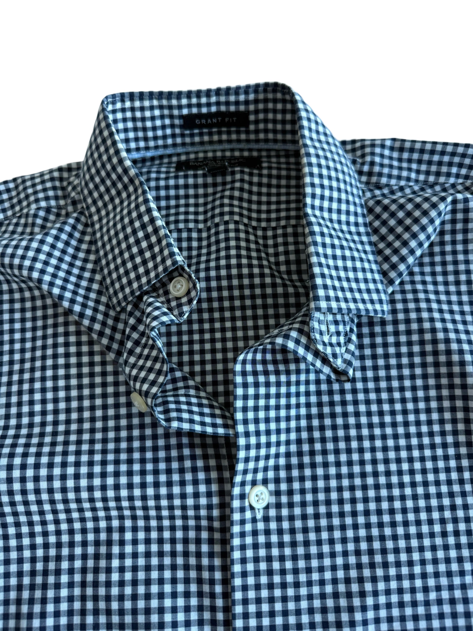 Embroidered Pre-Loved Navy Blue Gingham Button Down