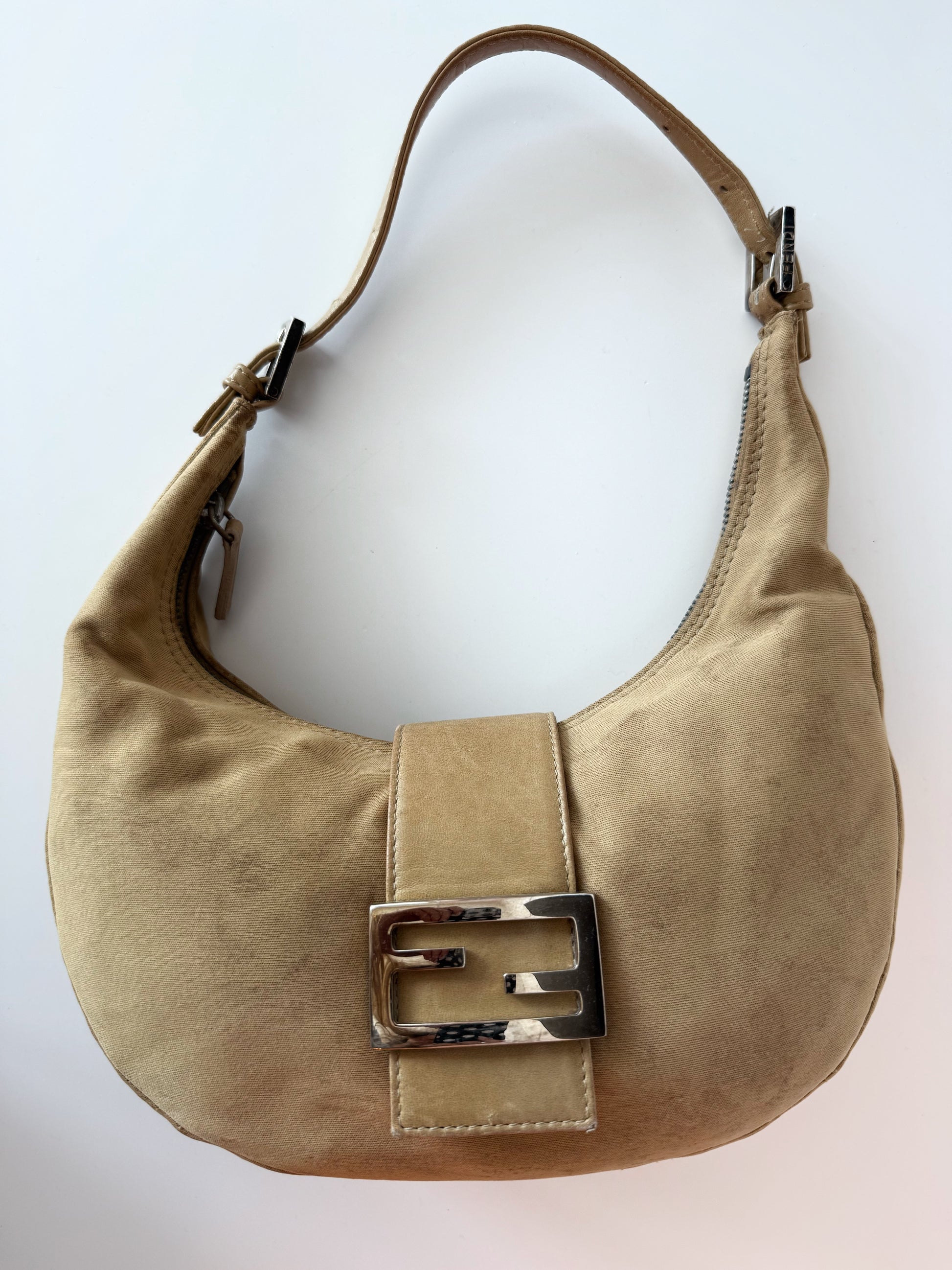 Early 2000s Fendi Croissant bag in beige/mustard color. Iconic bag in an iconic and versatile color.