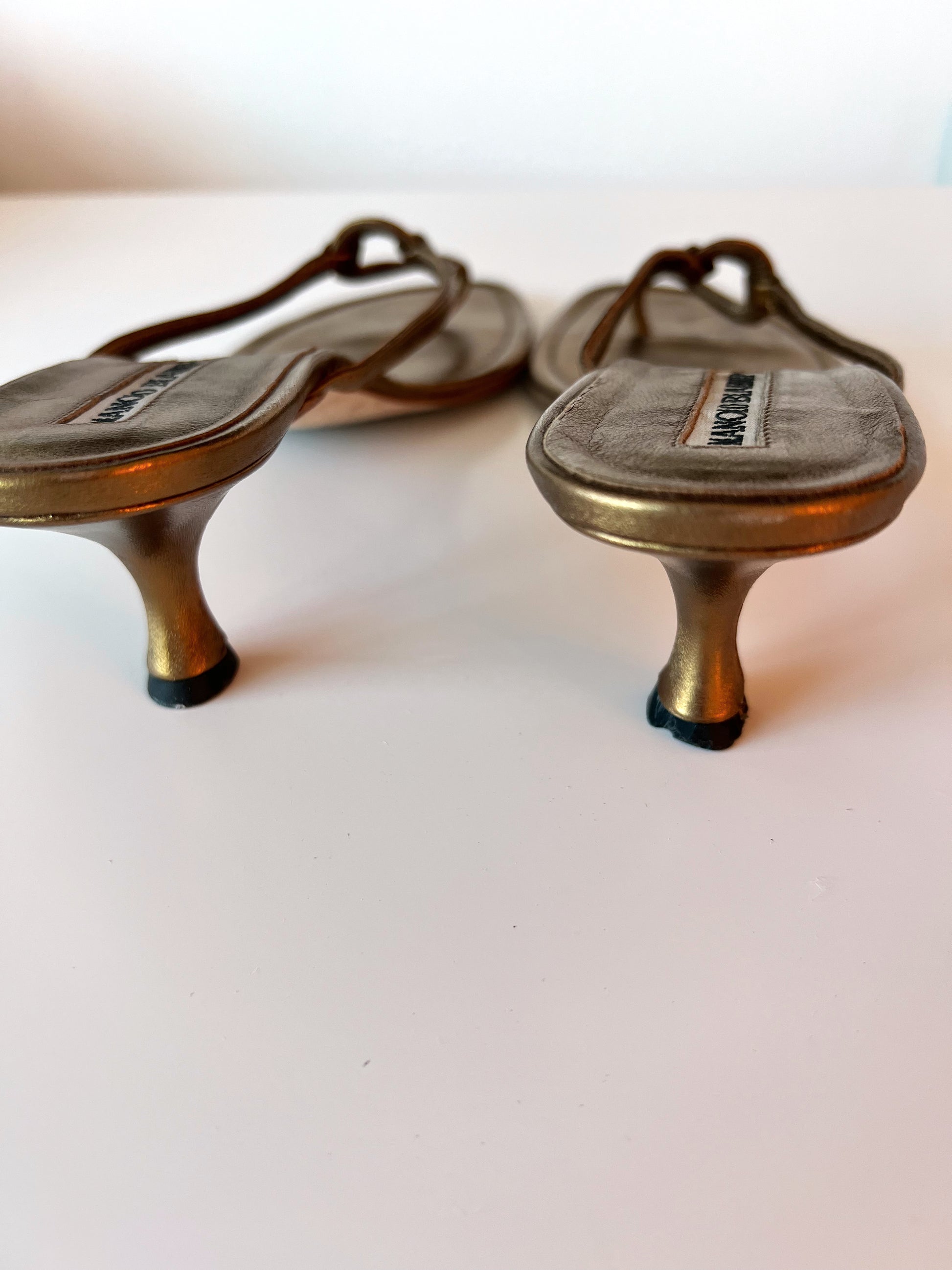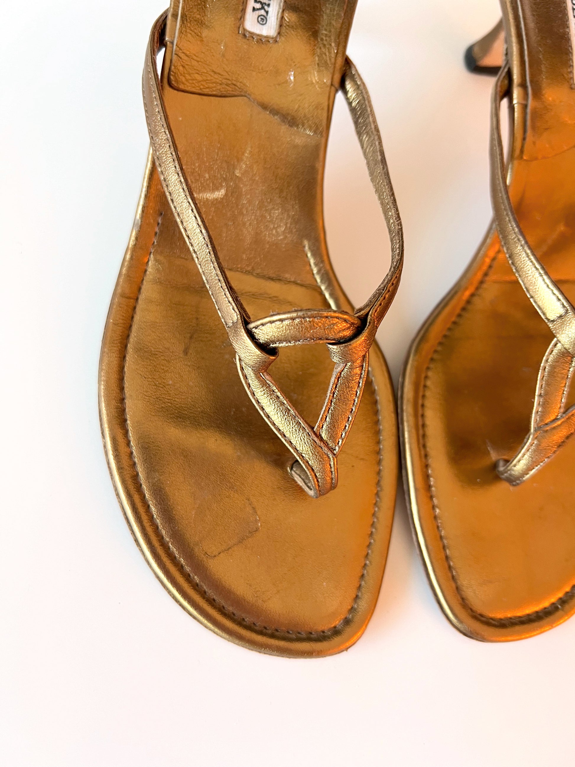 Gold Manolo Blahnik Kitten Heel Sandals (38) (SOLD)