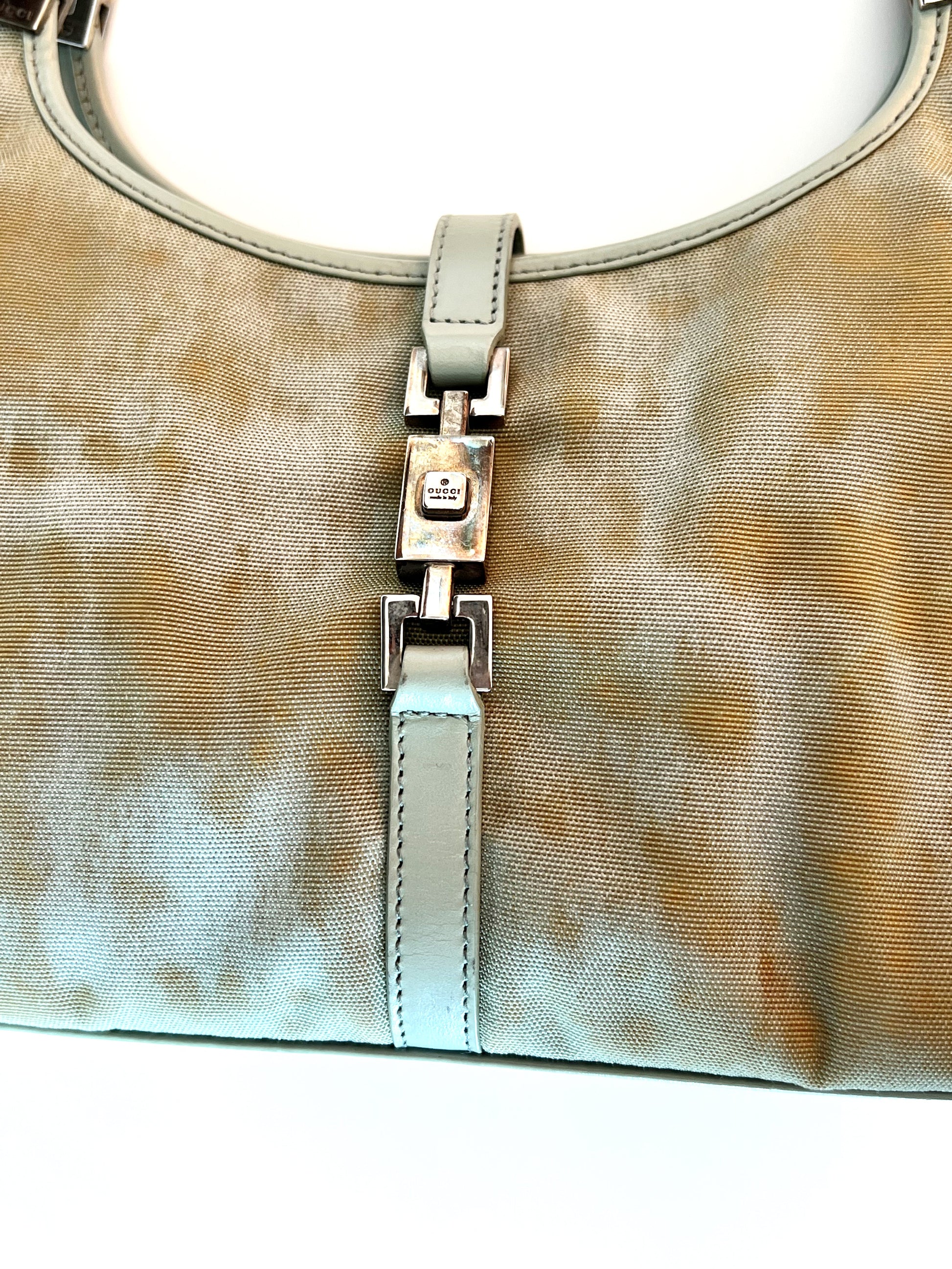 Rare Gucci Jackie tote in Green tie-dye colorway.