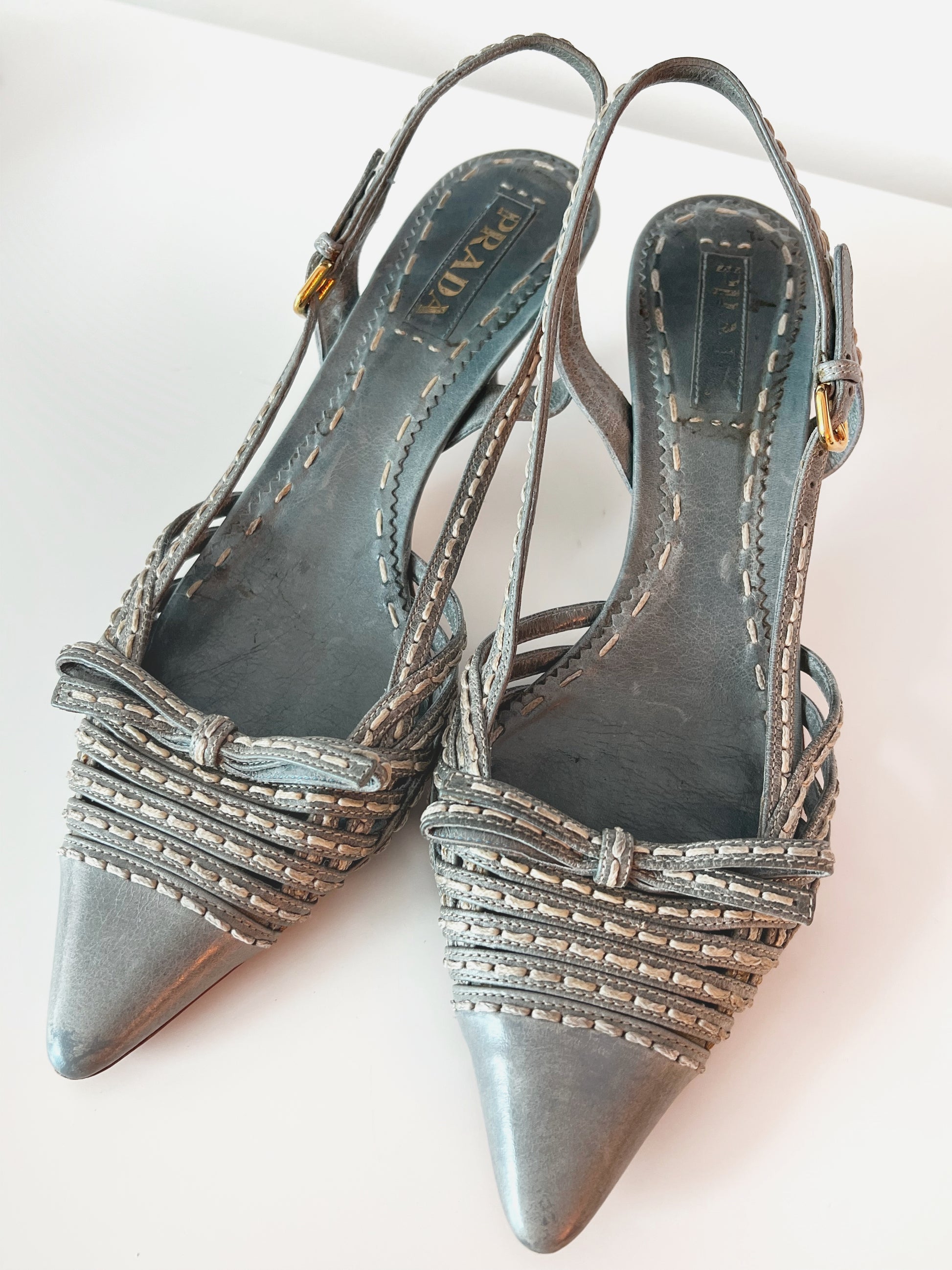Grey-Blue Prada Slingback Heels (39 EU)