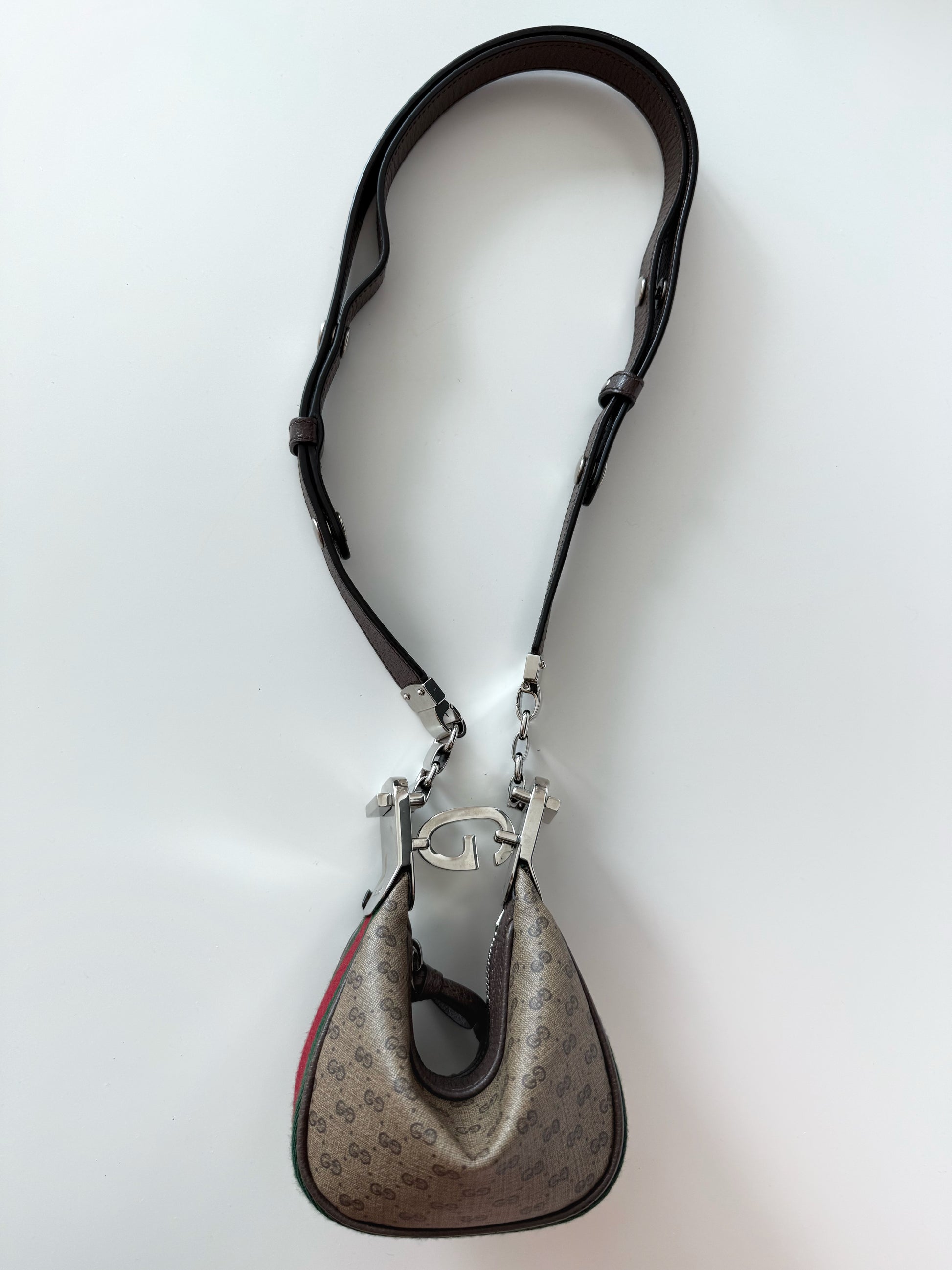 Gucci Attache Bag in mini size Balenciaga City bag. Comes with longer shoulder strap. can be worn clipped as a clutch, or unclipped as a shoulder mini bag.