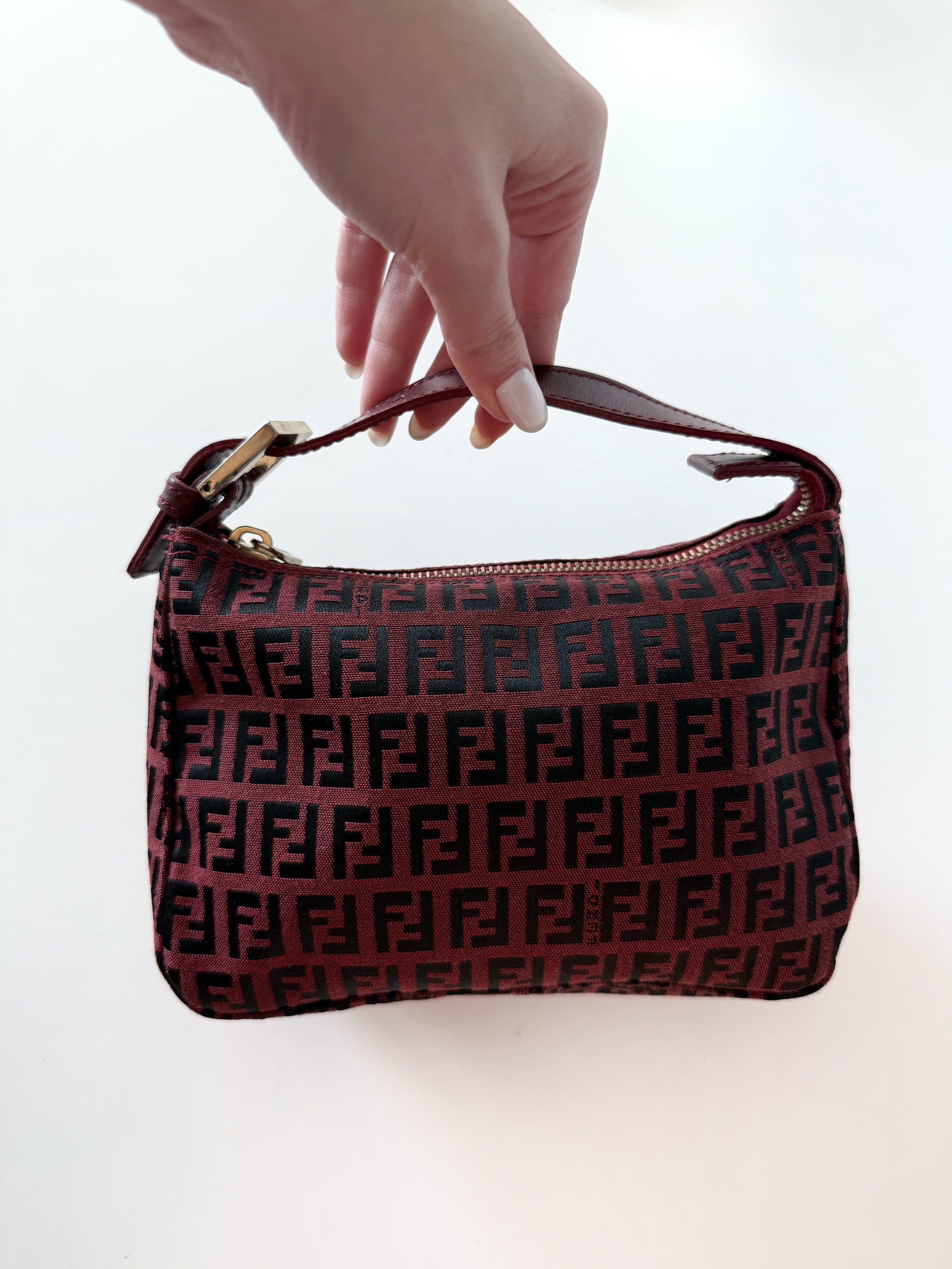 Vintage maroon Fendi small clutch bag. Fits iPhone Pro Max (largest iPhone).