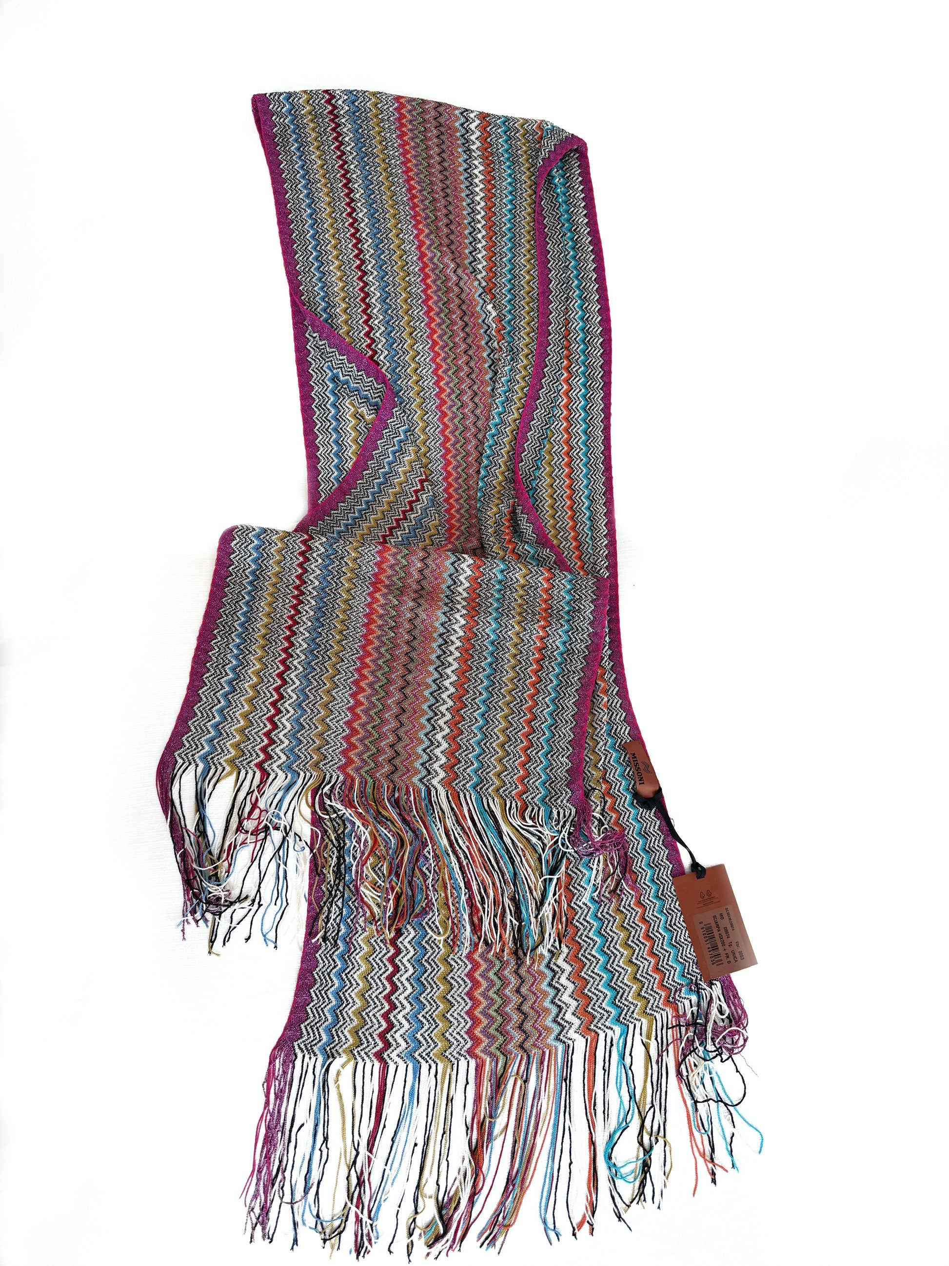 Missoni wrap/scarf in classic multi-colored chevron weave. Can be worn as a scarf or coverup, as pictured. New, with tags.