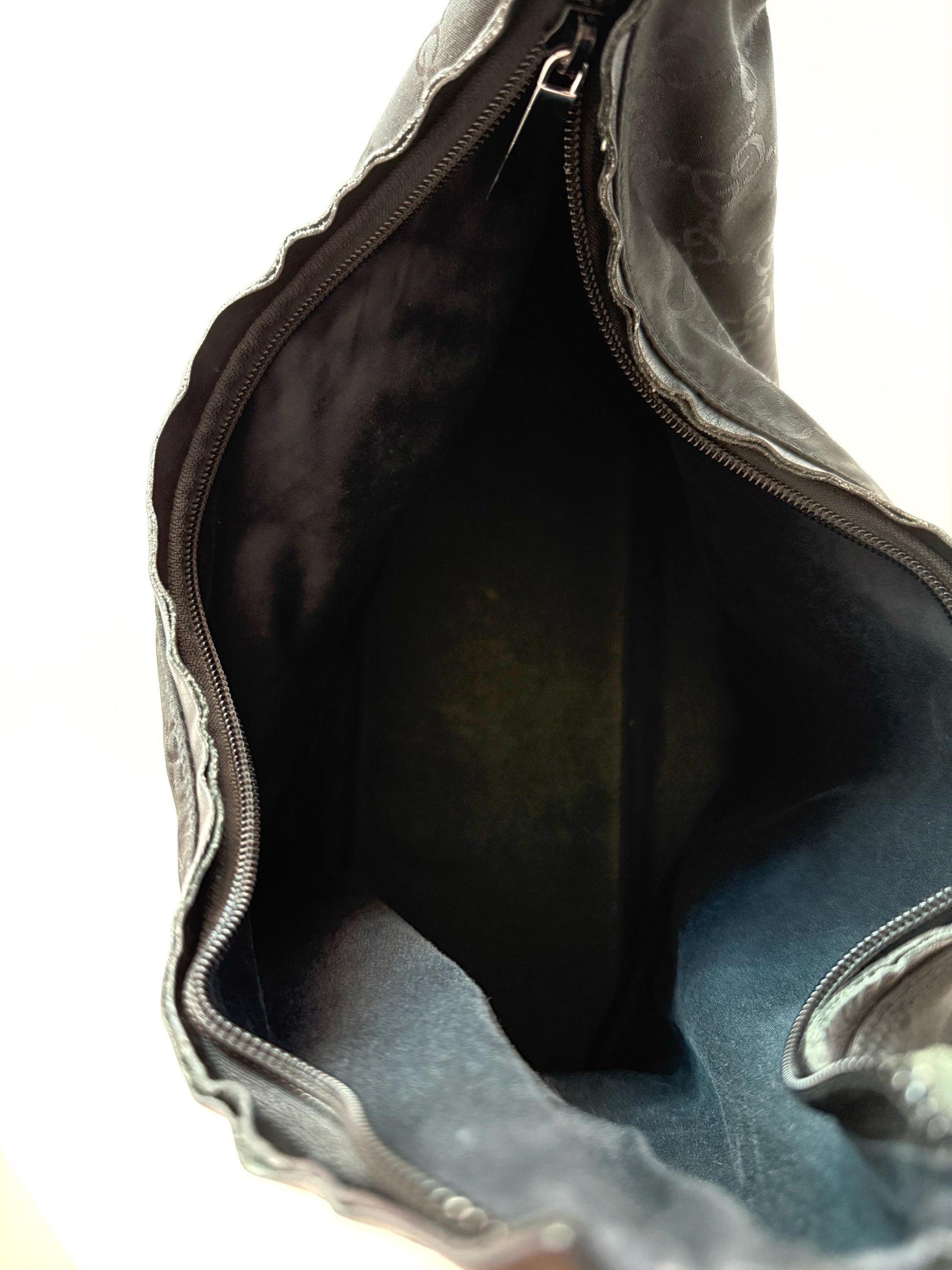 Black Gucci monogram bag. Soft fabric material with leather handles. Excellent work and everyday bag.