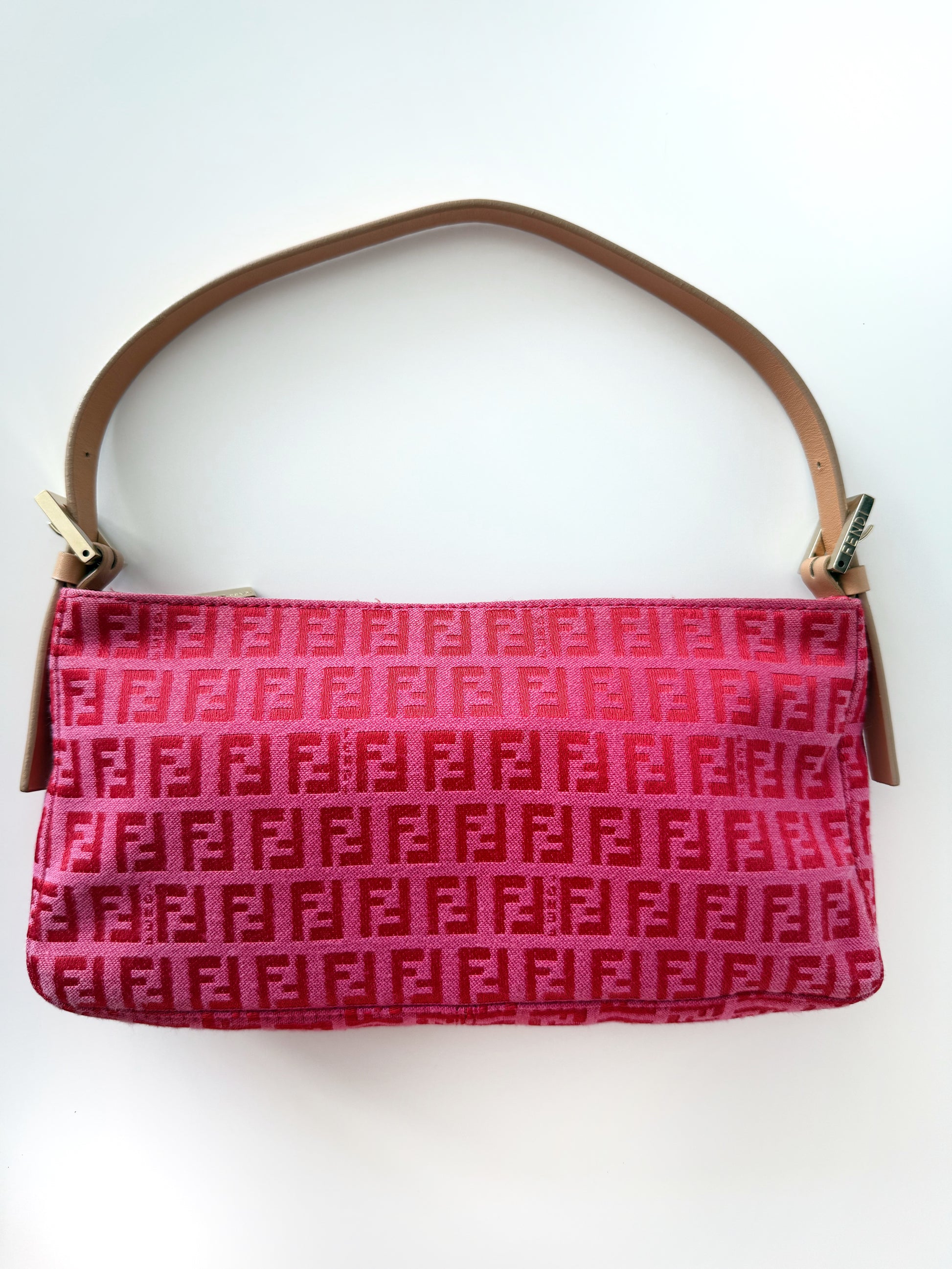 Pink and Red Fendi monogram shoulder bag. Comes with original authentication card and paperwork.