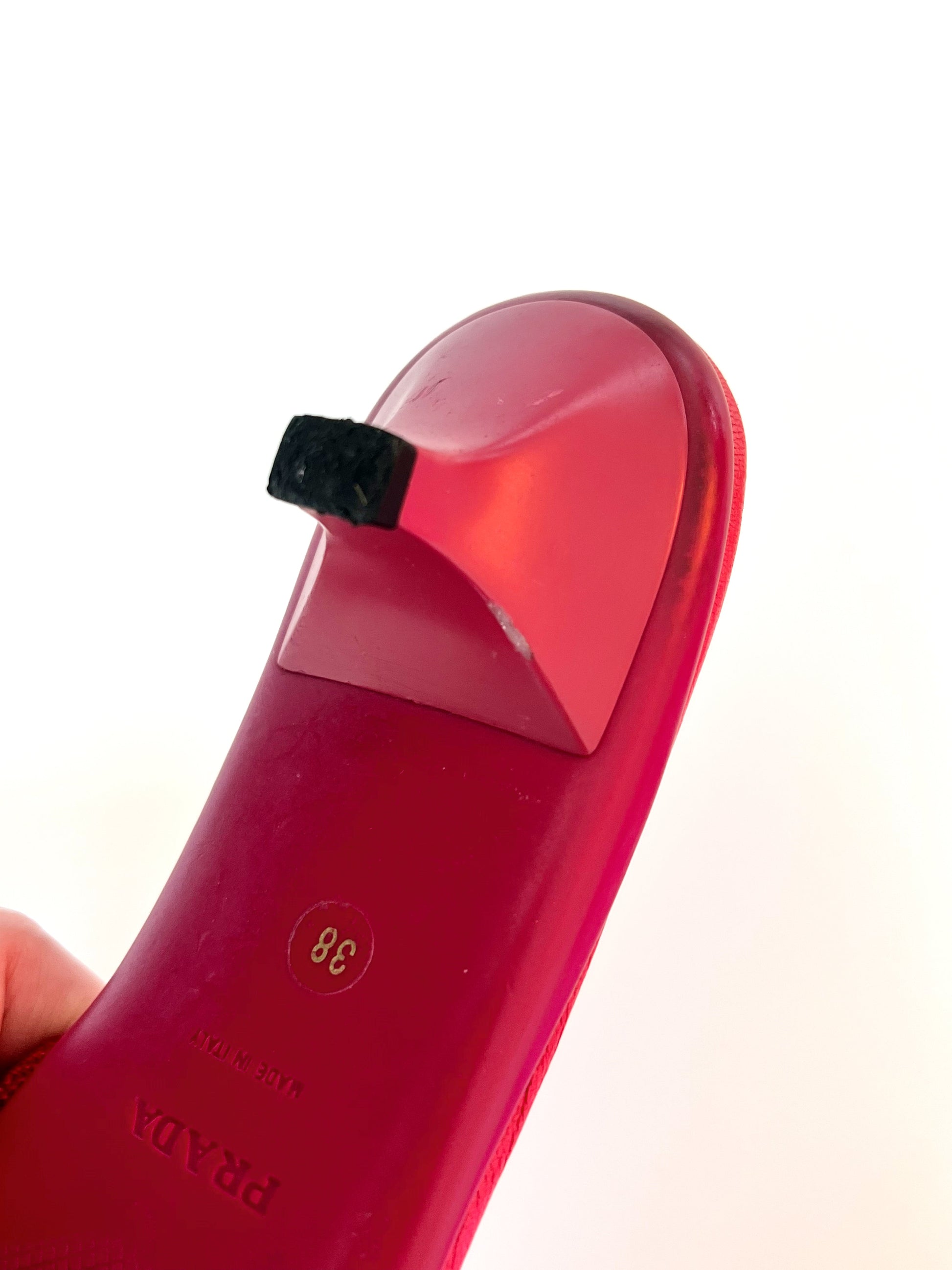 Size 38. Red kitten heels with multi-color straps and buckle. Perfect summer heel.