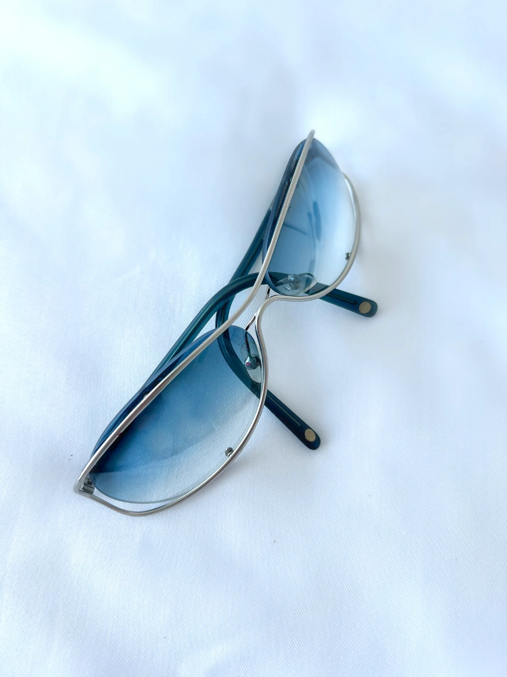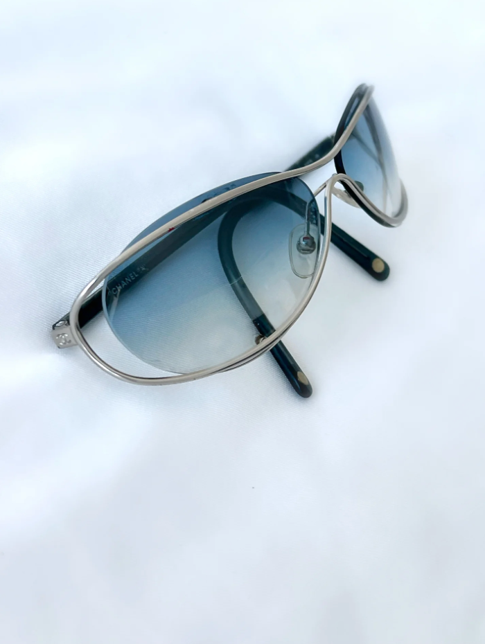 Rare vintage blue 4020 sunglasses. Visible Chanel logo on sides of frames. Blue ombre lenses.
