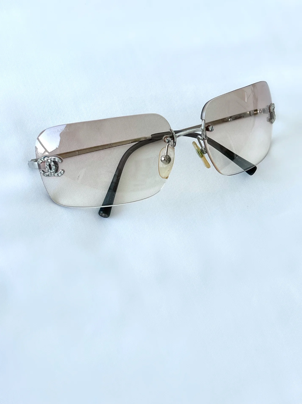 Vintage Gold Chanel Sunglasses with rhinestone detailing on logos.