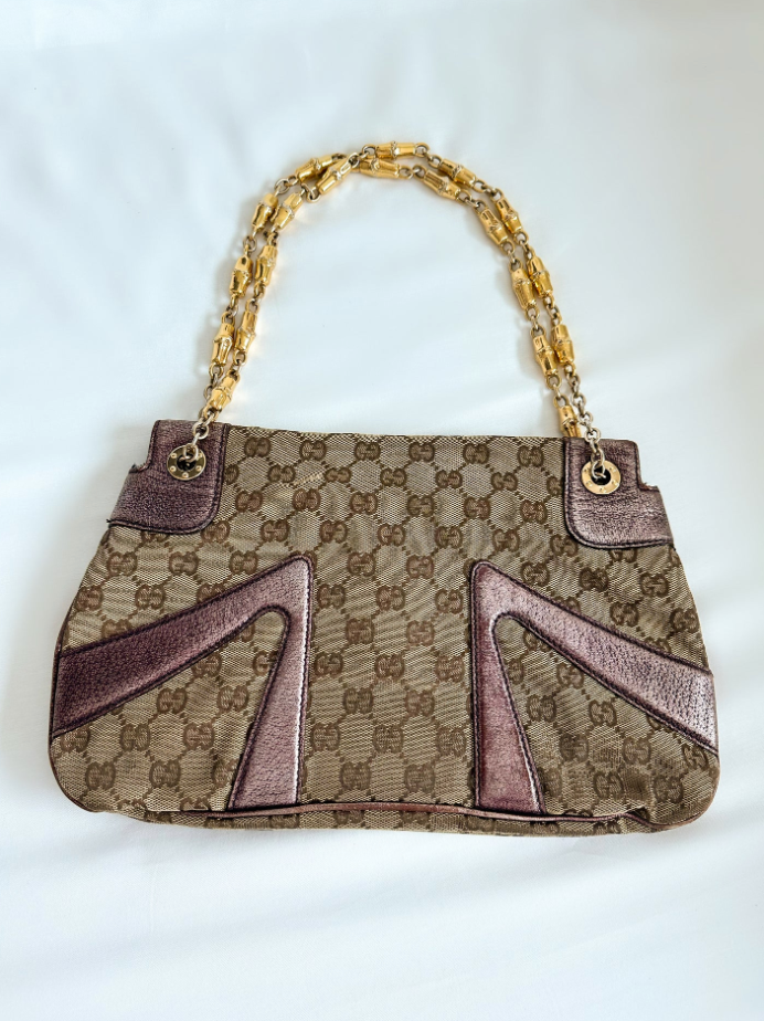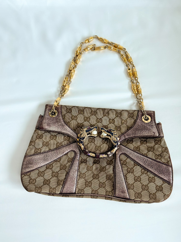 Gucci by Tom Ford Dragon Bag. Jeweled details on two-headed dragons. Adjustable chain straps.